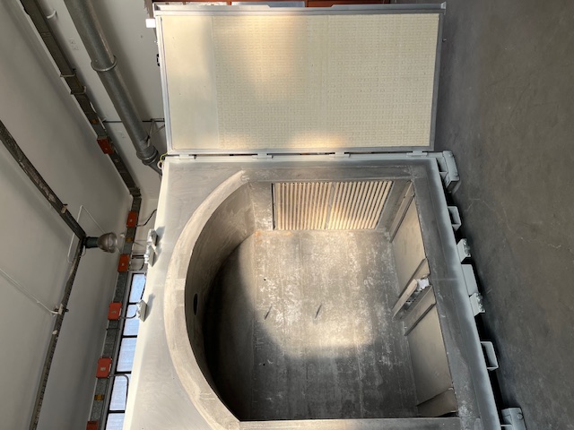 Costruito completamente in acciaio inossidabile, carpenteria e crogiolo, per resistere agli agenti acidi presenti nel metallo da fondere.